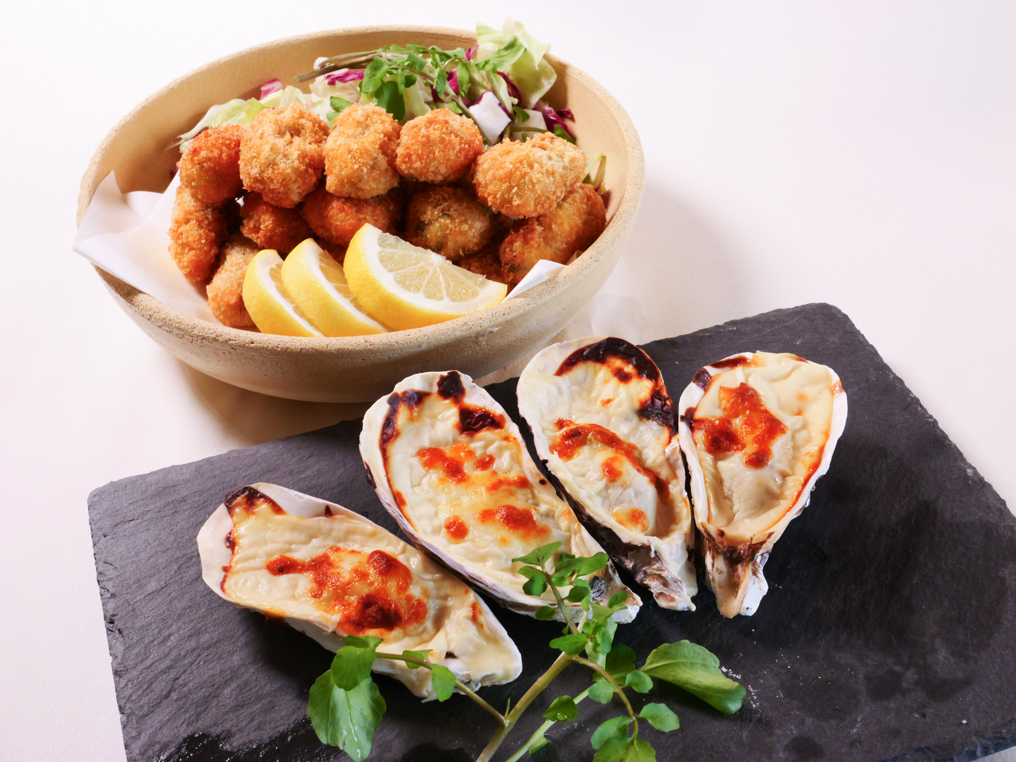 かきフライ、かきグラタンーー「かなわブランド」の牡蠣を使った2種類の料理をお楽しみいただけるセットです。