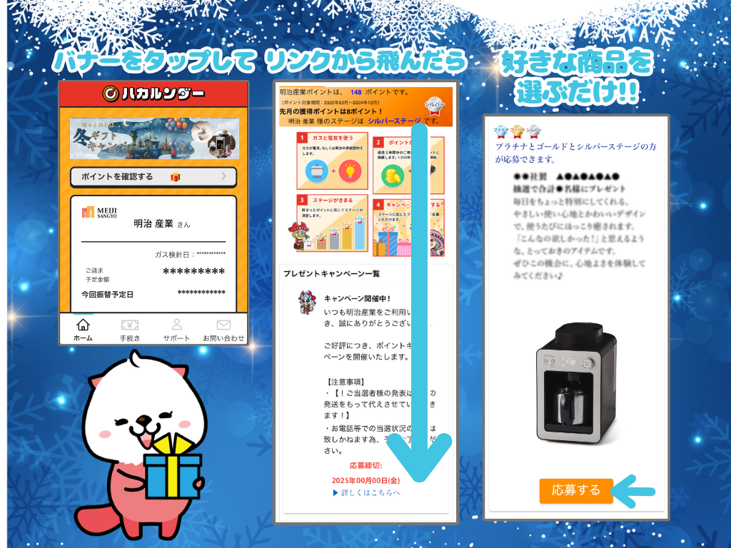 検針明細アプリ「ハカルンダー」でご応募が可能です。