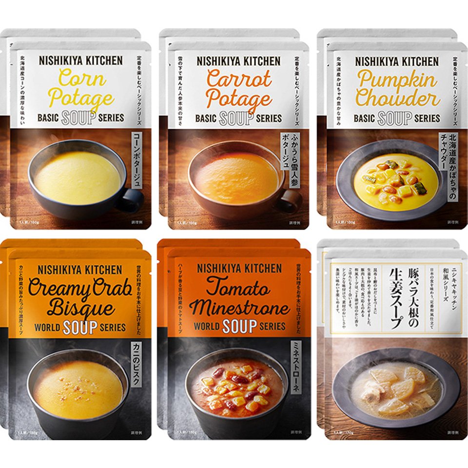 内容:ふかうら雪人参ポタージュ、コーンポタージュ、ミネストローネ、カニのビスク、北海道産かぼちゃのチャウダー、豚バラ大根の生姜スープ