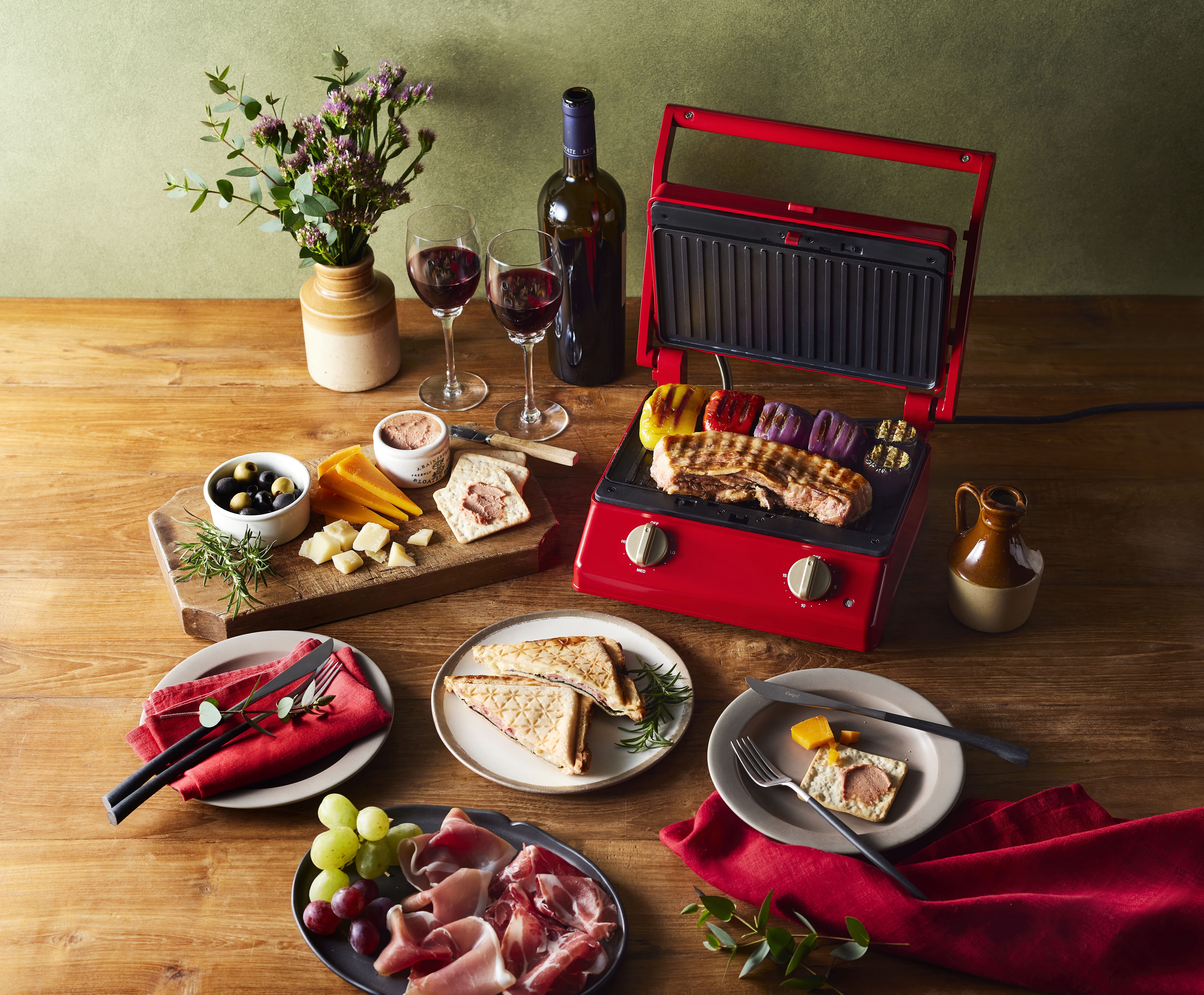 ギュッと挟んで焼くだけで、ホットサンドやパニーニが手早く完成するほか、ダブルサイズは付属プレートでお肉グリルなど本格料理が愉しめます。